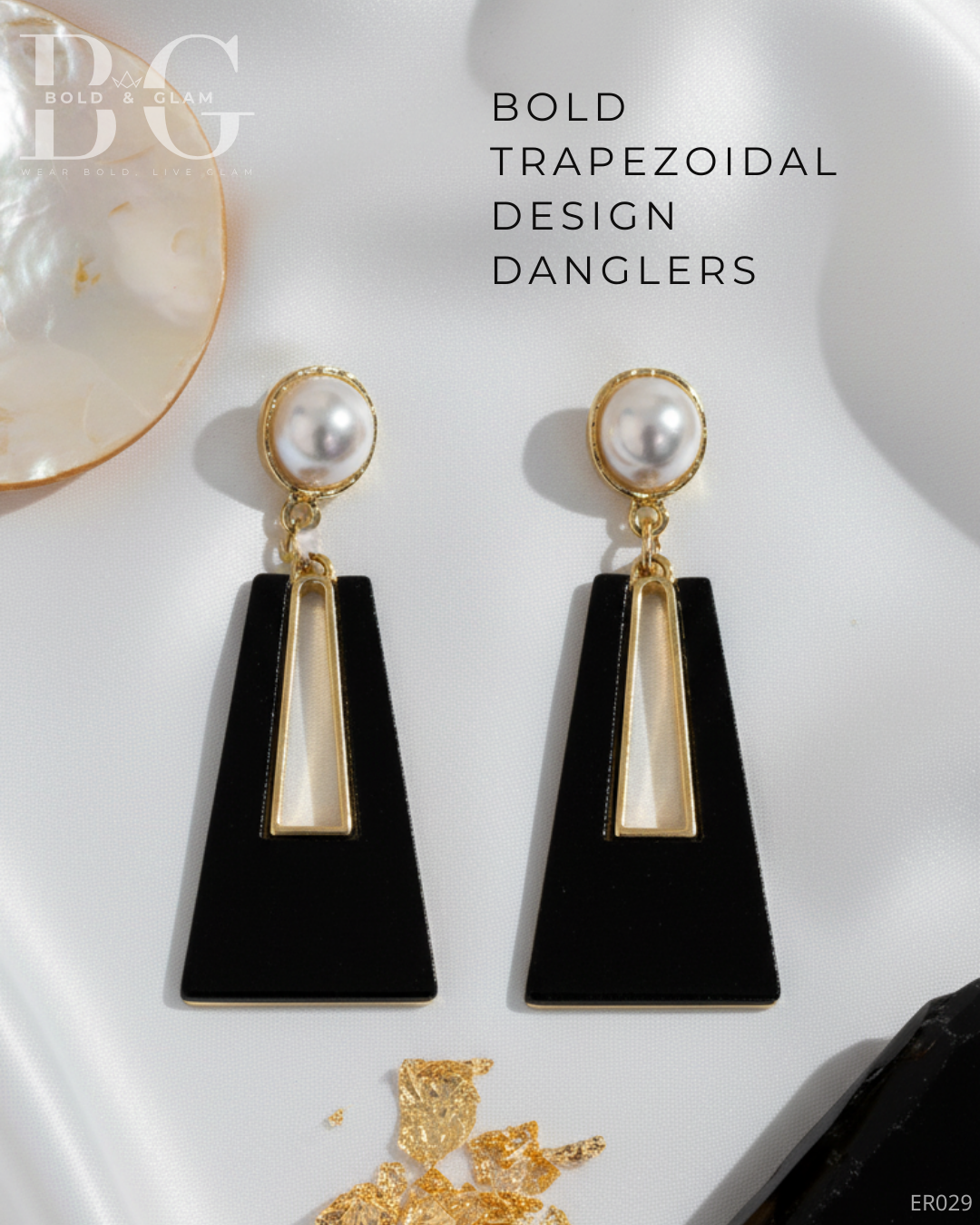 Step into a world of refined sophistication with our Bold Trapezoidal Design Danglers in BLACK. Designed to make a statement, these earrings embody modern chic with their unique trapezoidal silhouette and striking black finish, effortlessly complementing your outfits day or night.