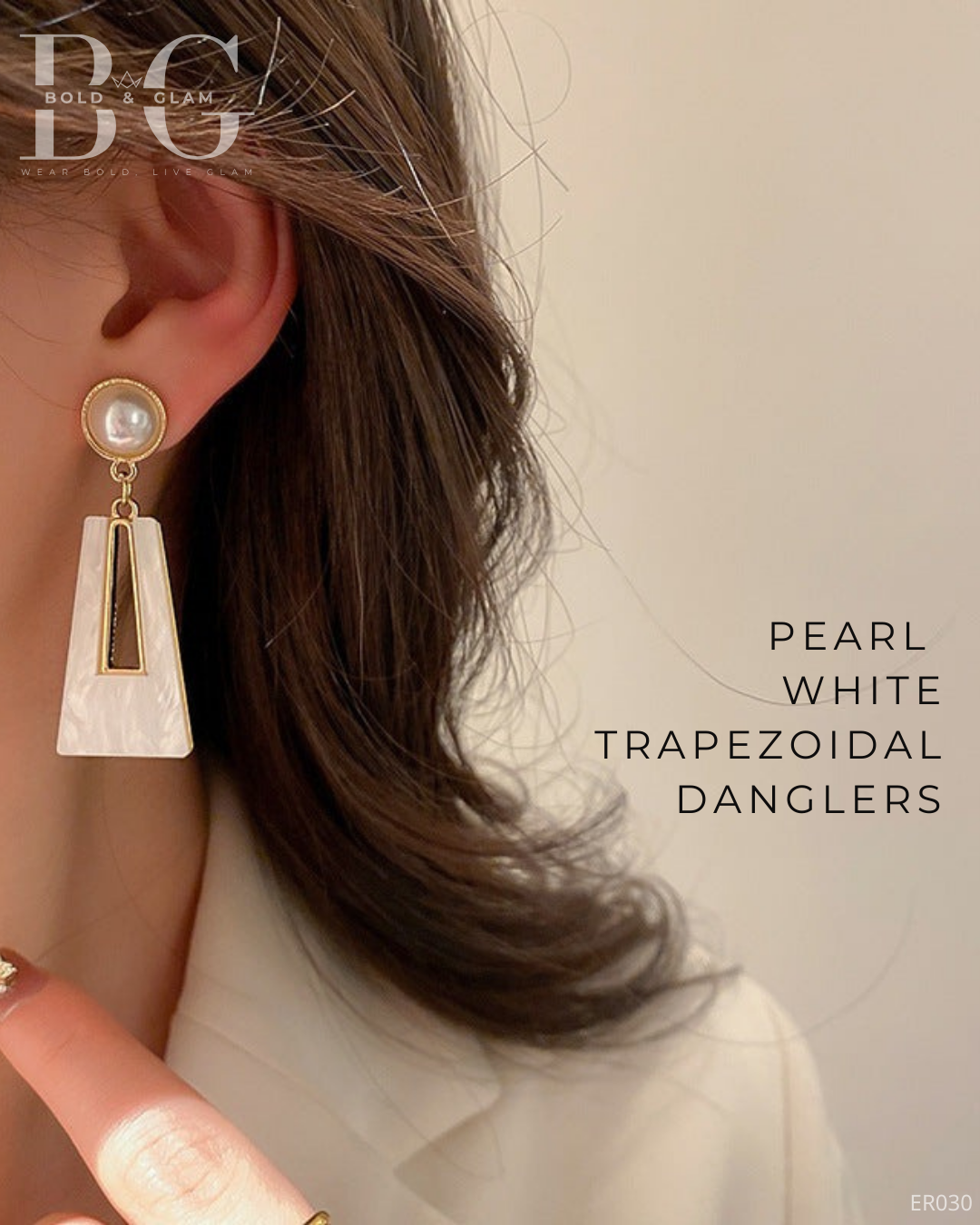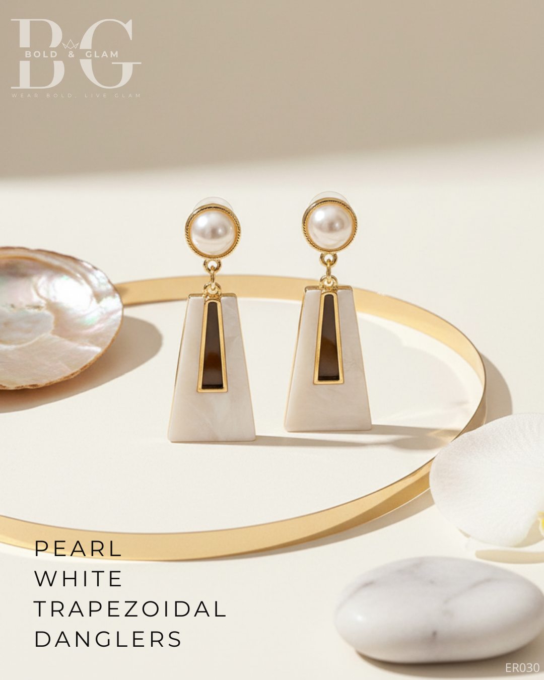 The trapezoidal silhouette adds a contemporary edge, while the pearl white finish exudes sophistication. Lightweight yet robust, these earrings offer both style and comfort, making them a staple for any accessory collection.